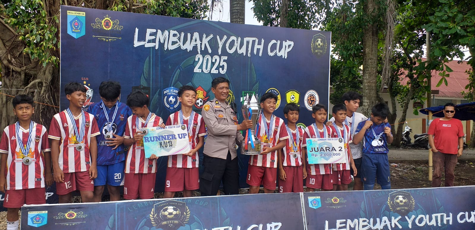 LombokFokus|Narmada – Lapangan Umum Narmada, Lombok Barat, Ahad (26/10/2025) pagi, jadi saksi berakhirnya ajang sepak bola muda paling bergengsi di wilayah itu, Turnamen Lembuak Youth Cup 2025 untuk kategori U-11 dan U-13. Dengan pengawalan personel Polsek Narmada, suasana penutupan berlangsung meriah diwarnai semangat sportivitas tinggi, dan tepuk tangan penonton yang tak henti-hentinya.